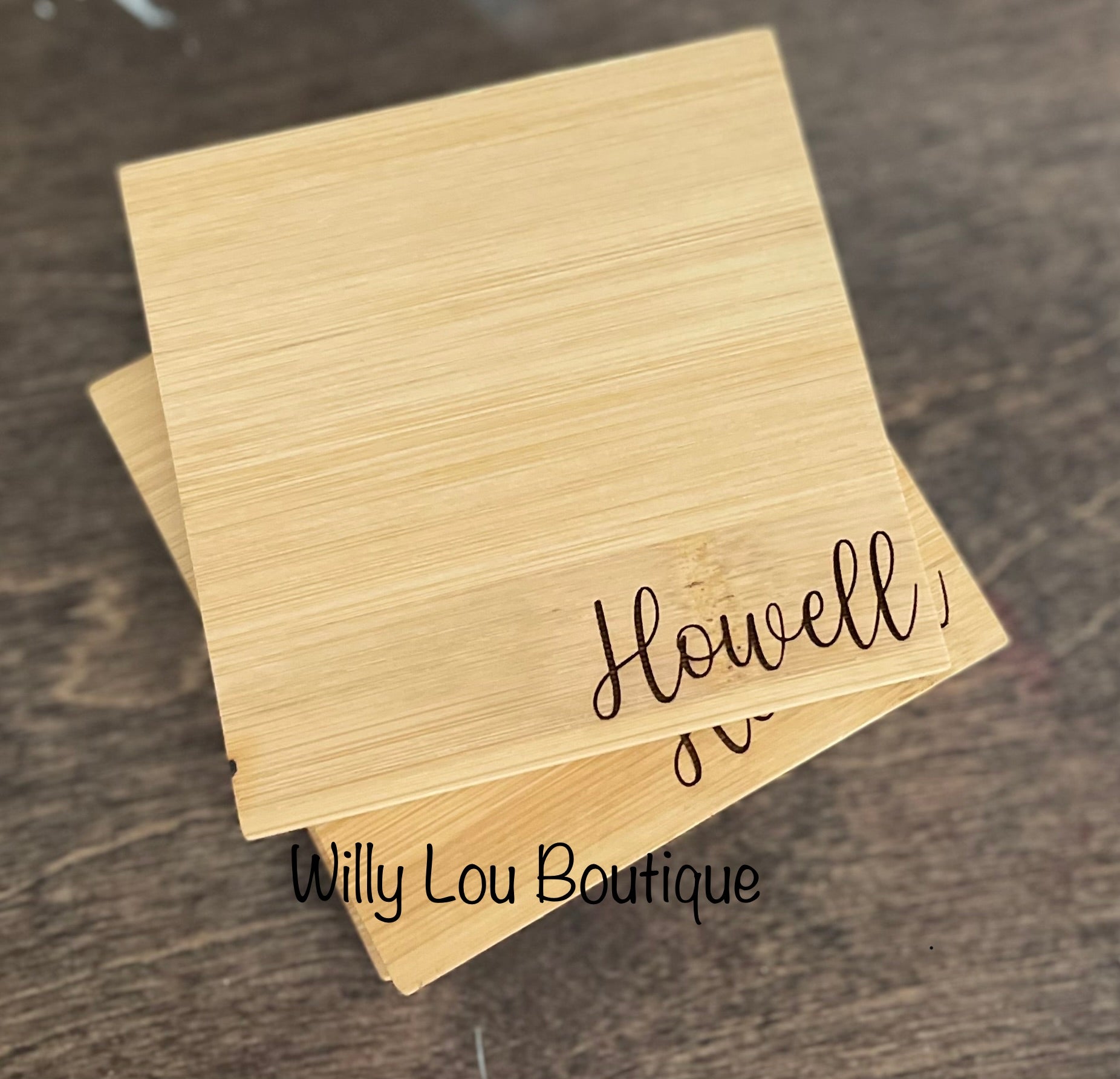 These wooden coasters come in a set of 4 and will make the perfect gift for anyone. These are made of bamboo wood and are custom laser engraved.